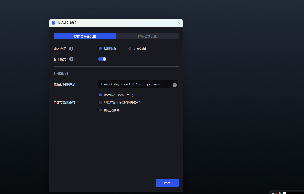 在主界面点击工件,点击具体的工件进入工件配置界面,滚动条下滑至影子模式